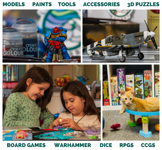 At LionHeart Hobby you’ll find a welcoming space filled with fun for scale model hobbyists. Our famous wall of paint is unmatched in Central Texas, and we carry a wide variety of scale models, tools, and books to inspire your creativity. Love games? Explore board games, D&D, Warhammer, and more. Bring friends, family, and kids. We always have room at our table!