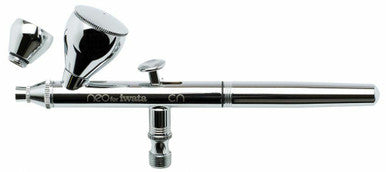 NEO CN Gravity Feed Dual Action airbrush has a detachable 0.24 oz / 7 ml fluid cup with lid that is large enough for color mixing and an additional 0.10 oz / 3 ml color cup that is ideal when using small amounts of spray medium. Fine atomization is achieved with the smallest air compressors, making NEO an affordable option for general purpose spraying and for anyone wanting to airbrush for the first time.